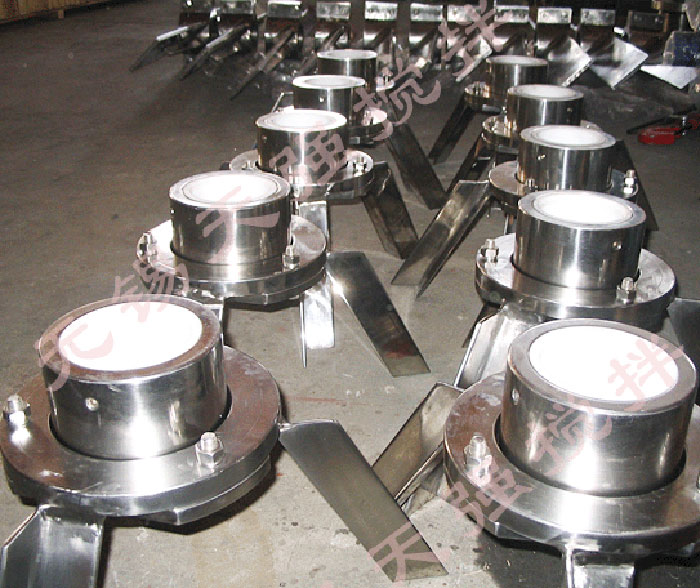 其特点是搅拌轴与搅拌器配置在搅拌罐的中心线上、呈对称布局,驱动方式为皮带传动或齿轮传动或者通过减速传动,也有用电机直接驱动的。其搅拌设备功率可以从0.1kw至数百千瓦, 常用的功率范围为 0.2~22kw。一般划分为,功率小于3.7kw为小型,5.5~22kw为中型,大于22kw为大型。食品工业中多用小型搅拌器。 转速低于100r/min的为低速型,100~400r/mm为中速型,大于400 r/mn为高速型。 根据不同的用途,桨叶的结构有各种各样的组合方式,加以三叶旋桨式。涡轮式为主体,可组合成多种结构形式,以适应多种用途。此类搅拌设备在国外多数已标准化,其转速范围在300~360r/min,电机功率为0.4~15kw,用带传动或齿轮传动的一级减速驱动。